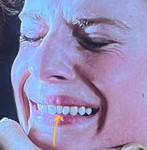 Caso similar al anterior: actriz lindísima, incisivo lateral torcido hacia atrás. No parece importarle mucho… Coincido 100%.
